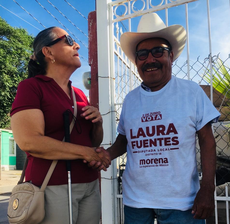 Laura Fuentes padece discapacidad visual desde hace 8 años y asegura que dentro de sus propuestas es impulsar los derechos laborales, pues actualmente las autoridades estatales solo contemplan apoyos en especie que no cubren sus necesidades, e incluso, se ven en la necesidad de solicitar apoyo a familiares para cubrir sus 3 alimentos diarios.