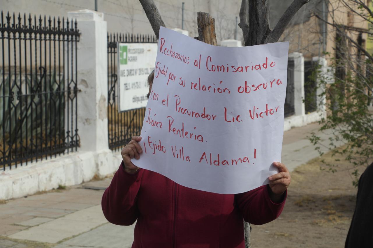 Chihuahua.- Piden ejidatarios de Villa Aldama destitución de procurador agrario frente a las instalaciones de la Procuraduría Agraria, ubicada en la avenida Zarco.