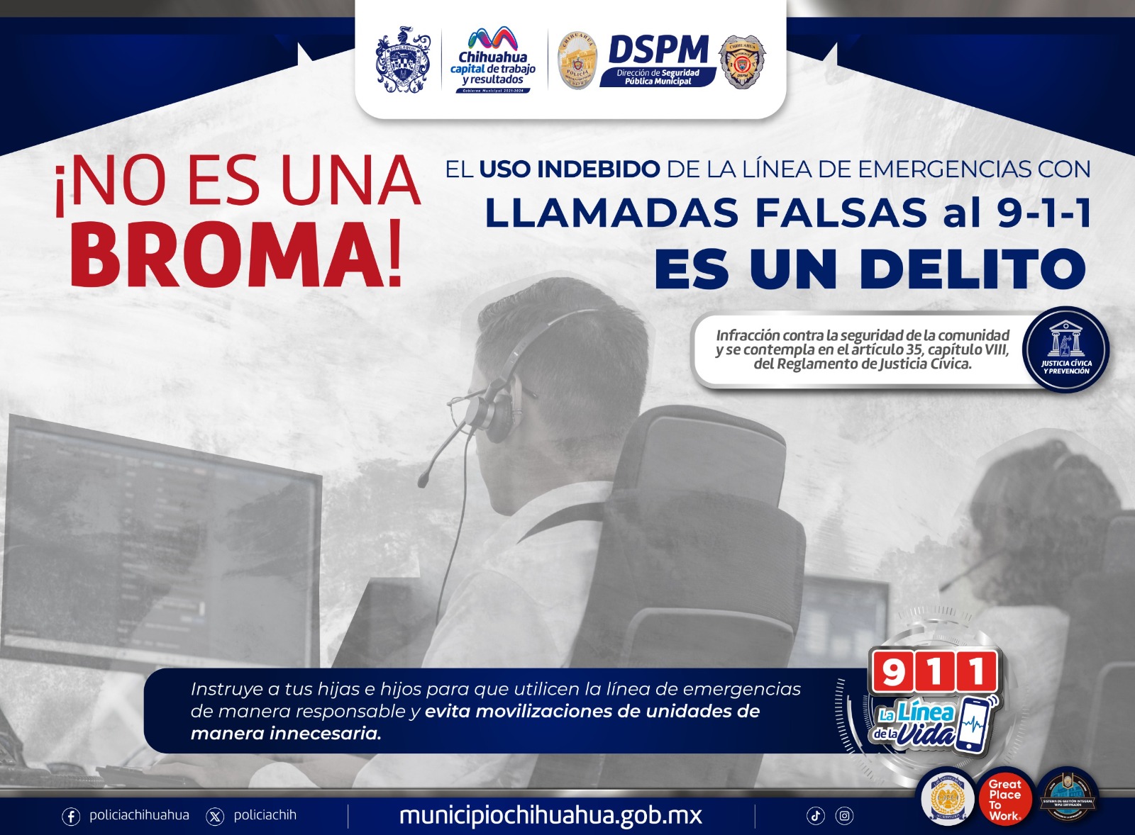 Chihuahua, Chih.- El Gobierno Municipal, a través de la Dirección de Seguridad Pública Municipal (DSPM), exhorta a la ciudadanía a no realizar llamadas falsas al 9-1-1, para evitar movilizaciones innecesarias de policías o bomberos, ya que pudieran ser necesitados en situaciones reales.