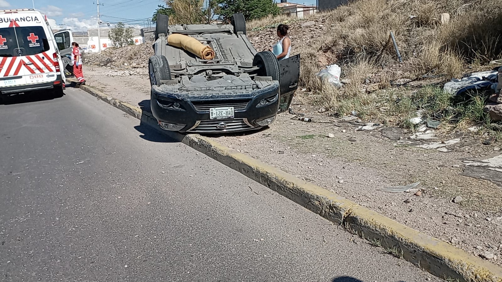 Pierde control del volante y vuelca en Vialidad Los Nogales