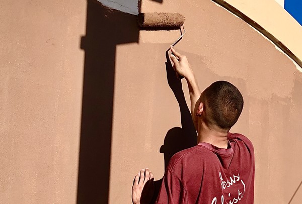 El menor de 17 años de edad, laboró en sus tiempos libres por espacio de dos meses, para repintar el muro de aproximadamente 300 metros de largo por 2 de alto con varias cubetas de pintura donadas por la Dirección de Servicios Públicos Municipales.