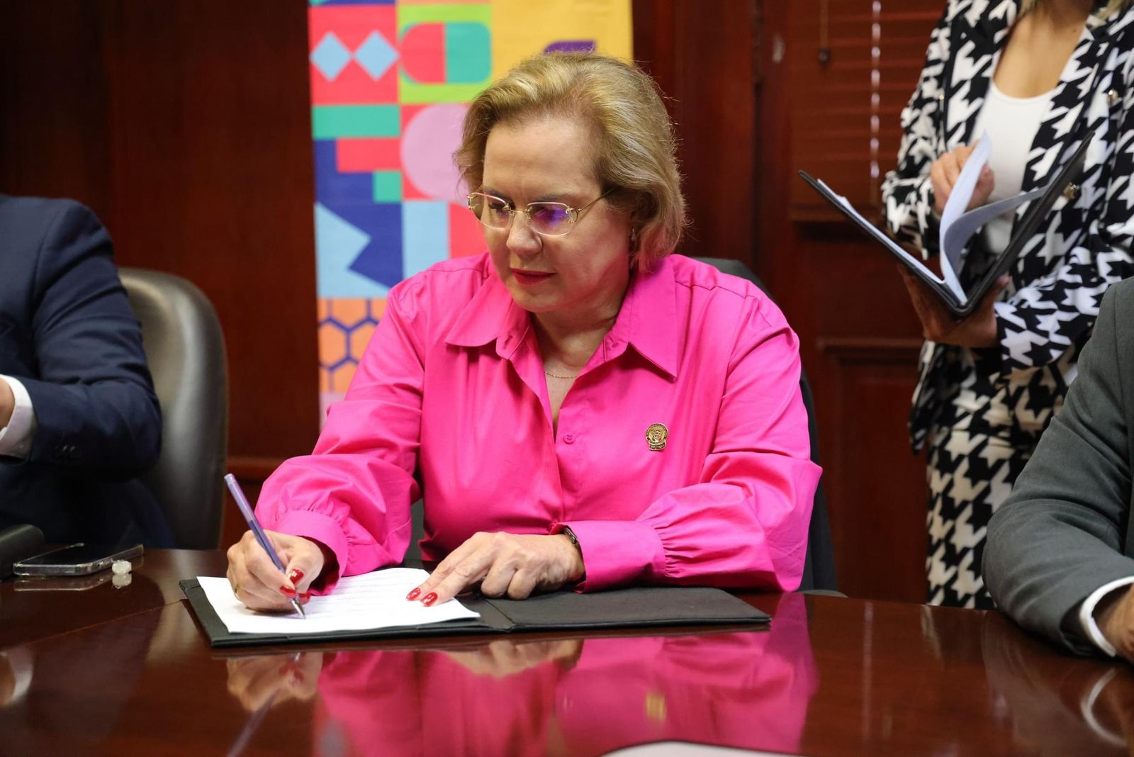 Por parte del Congreso del Estado además de la presidencia estuvieron presentes diputado José Alfredo Chávez Madrid; presidente de la Junta Coordinación Política: el maestro Ottofriderch Rodríguez Alonso, Secretario de Administración; por parte de la UACH además del rector estuvieron presentes la Dra. Ruth del Carmen Grajeda González, Directora de Extensión y Difusión Cultural y la Dra. Cristina Cabrera Ramos, Directora de la Facultad de Contaduría y Administración.