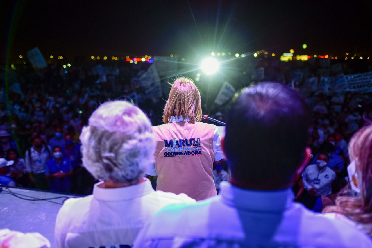 “Gracias porque ahora me siento una juarense, Mocken me hizo juarense, voy a trabajar contigo para que el dinero se regrese y se quede en Juárez, y las obras y los proyectos se queden con los juarenses”, agregó Maru.