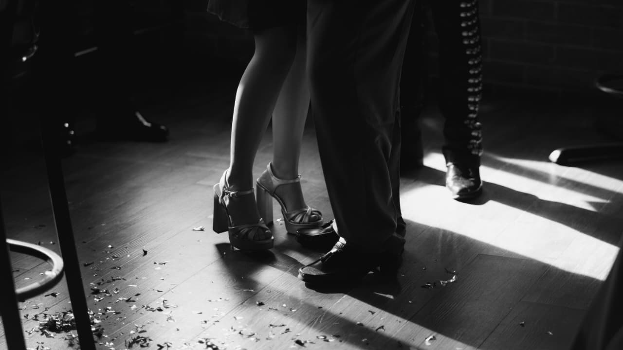 La gráfica “Baile Familiar” fue tomada en un festejo de una graduación, cuando los padres de una amiga de David bailaban al son del mariachi. Se pueden apreciar el piso de duela con confeti, los pies del matrimonio y de uno de los músicos.