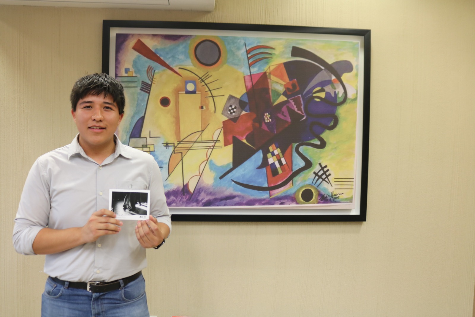 Luego de entregarle un reconocimiento, el director de la Facultad de Ingeniería, Mtro. Fabián Hernández Martínez felicitó a David Mauricio por poner en alto el nombre de la Universidad Autónoma de Chihuahua y del estado en este concurso internacional.