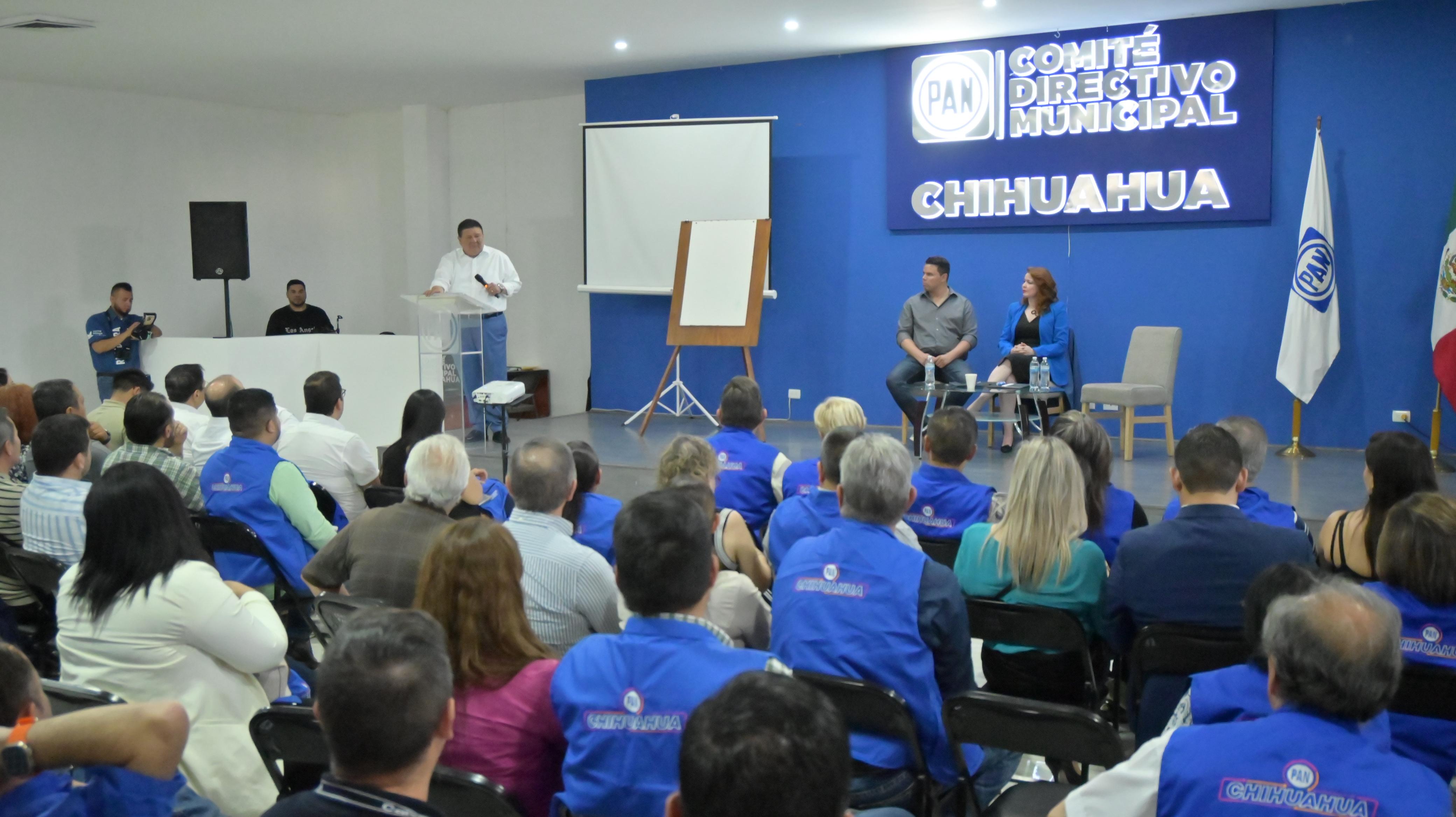 En el presídium estuvieron el fiscal general César Jáuregui, Sarahí Franklyn, dirigente del PAN Municipal; y René Rascón Mondragón, secretario general del partido.