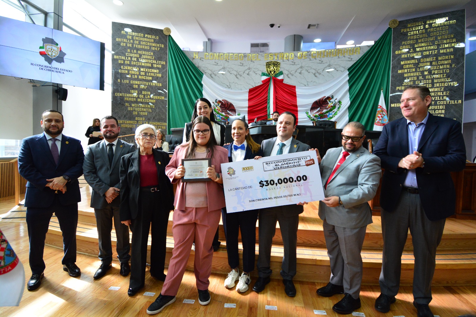Chihuahua.- En Sesión Solemne del Congreso, los Tres Poderes del Estado entregaron el Reconocimiento al Mérito Deportivo edición 2025, en cada una de las categorías establecidas en la convocatoria.