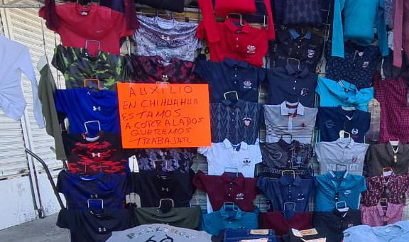 Algunos comerciantes pegaron algunas cartulinas pidiendo ayuda a los chihuahuenses, con mensajes como “Auxilio, en Chihuahua estamos acorralados, queremos trabajar”, en alusión al gobernador, Javier Corral, y las medidas dictadas durante el llamado “supercierre”.