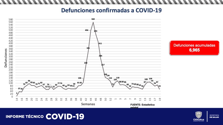 Respecto a las personas que perdieron la vida a causa del SARS CoV-2, 3 de ellas residían en Ciudad Juárez, 2 en la capital del estado, 1 en Jiménez y otra más en el municipio de Bocoyna.