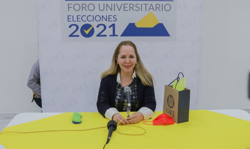 Juárez.- Atraer inversiones a la ciudad para generar nuevos espacios de oportunidad para los jóvenes recién egresados de la universidad fue una de las muchas propuestas que presentó la candidata a la presidencia municipal Adriana Fuentes durante el Foro Universitario Elecciones 2021 en la Universidad Autónoma de Ciudad Juárez.