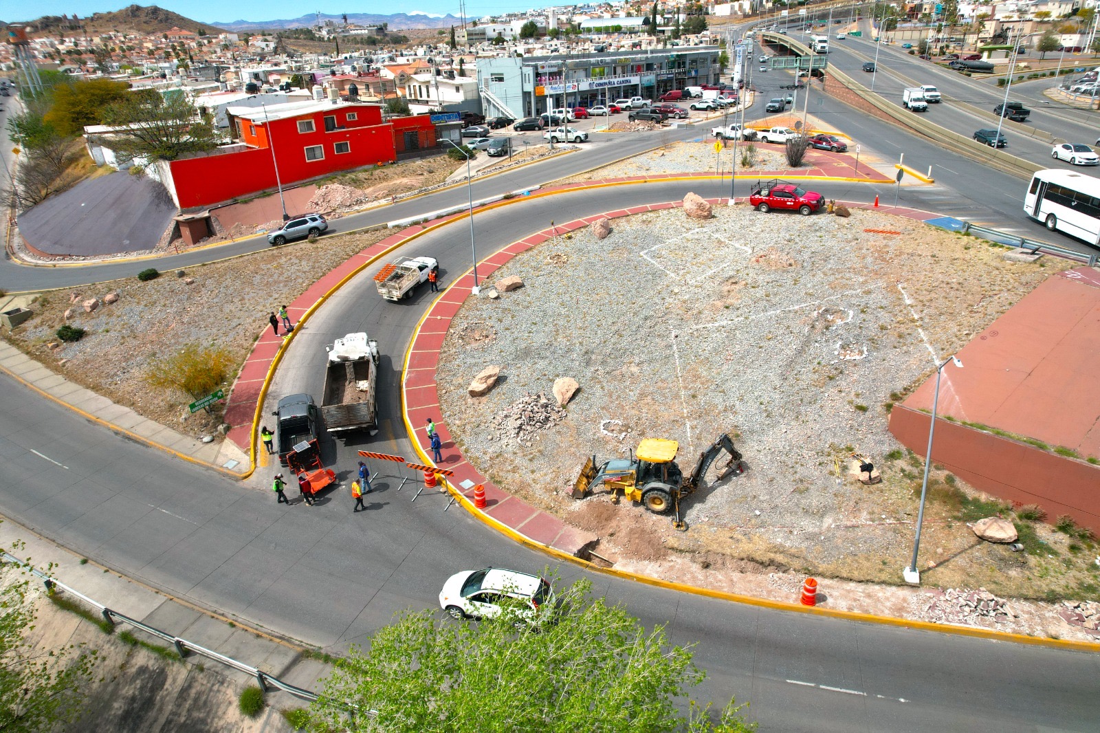 Las primeras labores contemplan la reubicación de una línea de conducción de agua potable y posteriormente la excavación de las zapatas que servirán como base para los apoyos del arco que formará parte de esta solución vial, diseñada para mejorar la movilidad en una de las zonas con mayor flujo vehicular de la ciudad.