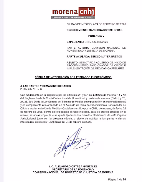 De acuerdo con la resolución identificada como CNHJ-CM-068/2026, la decisión se tomó tras abrirse un procedimiento de oficio, derivado del impacto mediático que generó el anuncio. El órgano interno consideró que la determinación del legislador provocó “un impacto negativo en la imagen de Morena” y generó dudas sobre la congruencia entre los principios del partido y la conducta de sus representantes populares.
