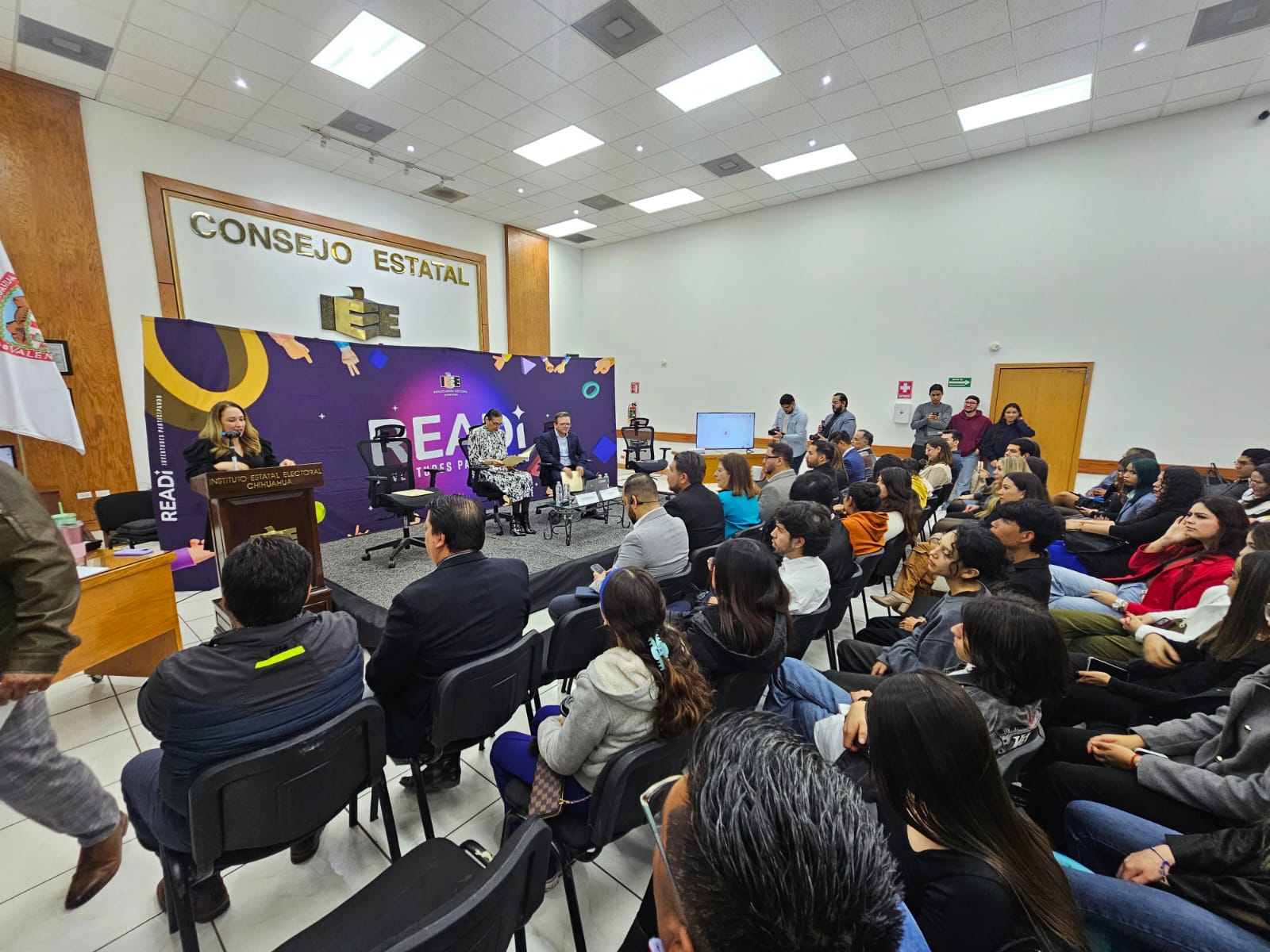 Este espacio fue organizado por el Instituto Estatal Electoral de Chihuahua (IEE), en coordinación con la Suprema Corte de Justicia de la Nación (SCJN), a través de la Dirección General de los Saberes Jurídicos y la Casa de los Saberes Jurídicos en Ciudad Juárez, con la colaboración de la Red Estatal de Agrupaciones Juveniles por una Democracia Incluyente.