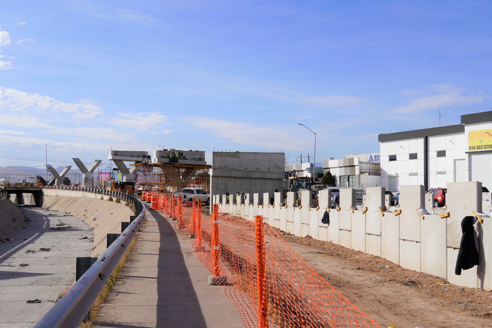 Chihuahua.- El director de Obras Públicas, Carlos Rivas, dio a conocer que el puente de que se construye en Vialidad los Nogales y avenida de las Industrias, presenta un avance del 30%.