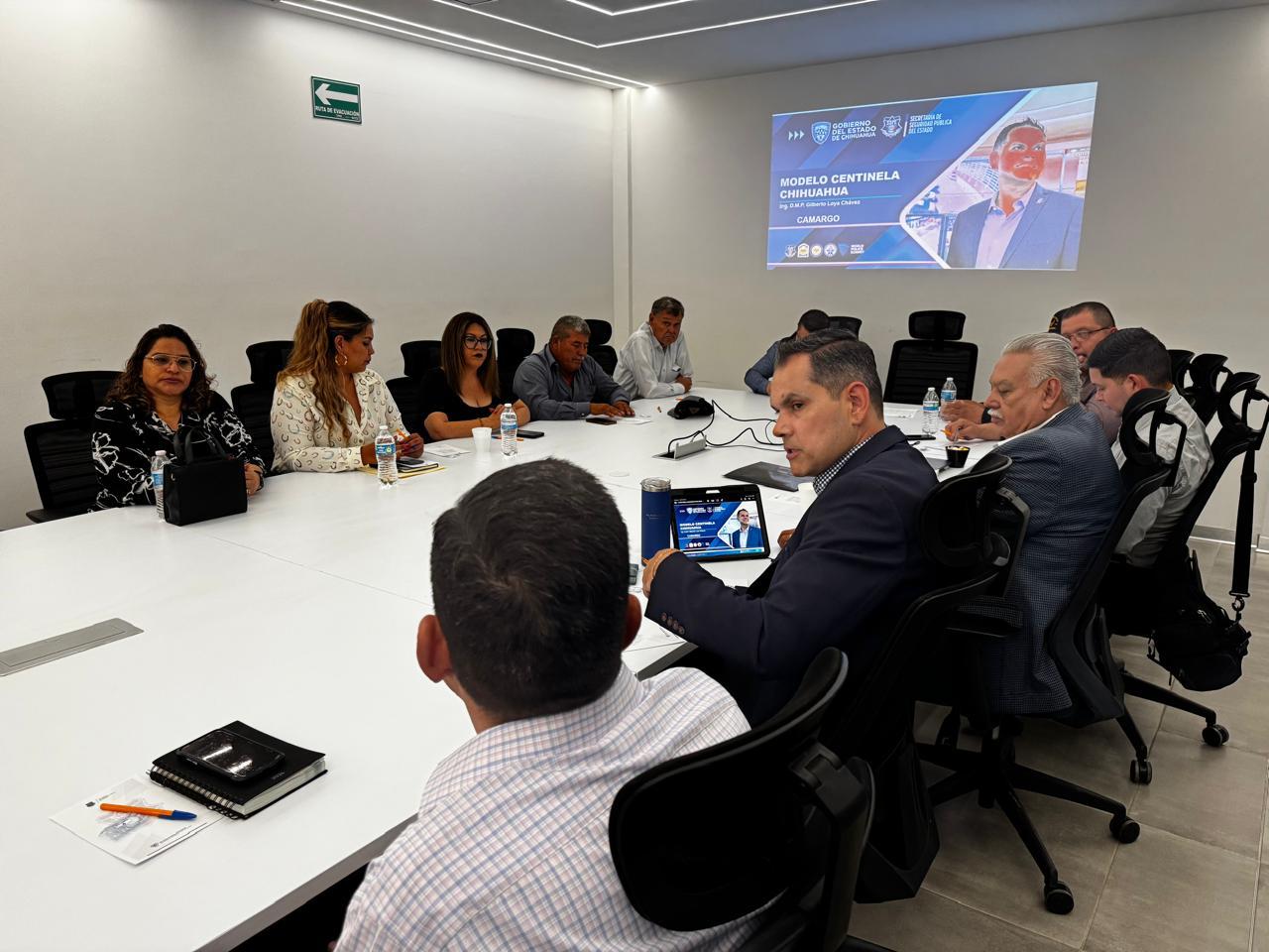 Camargo.- El Secretario de Seguridad Pública del Estado, Gilberto Loya, sostuvo una reunión con líderes y representantes de la sociedad civil, así como con integrantes de cámaras empresariales, del sector agrícola y ganadero, con el objetivo de presentar los resultados de seguridad y de la Plataforma Centinela en la región.