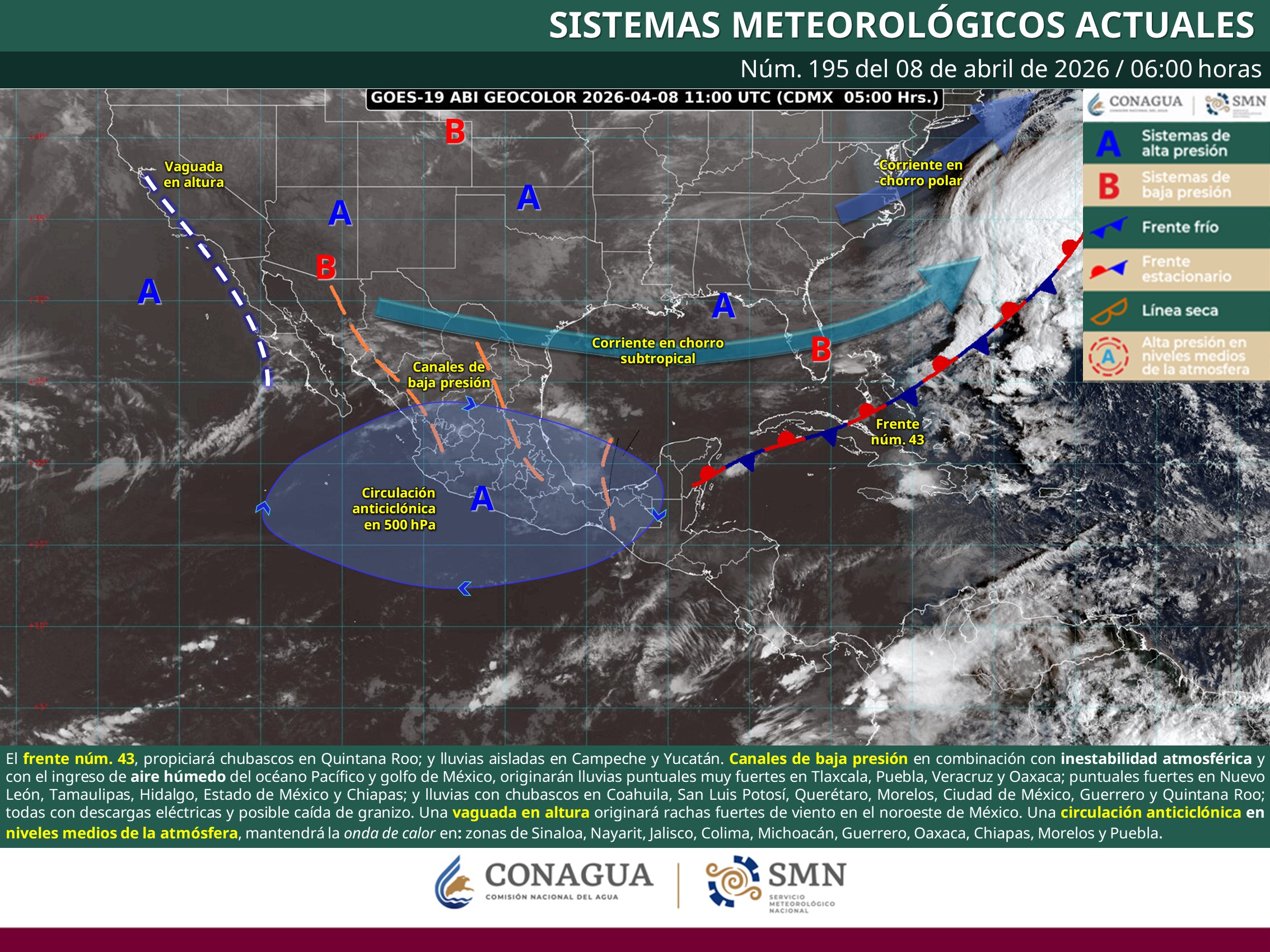 Chihuahua.- El Servicio Meteorológico Nacional (SMN) informó que una vaguada en altura originará vientos en el noroeste del país este miércoles 8 de abril, con velocidades de 10 a 20 kilómetros por hora (km/h) con rachas de 30 a 50 km/h en la entidad.
