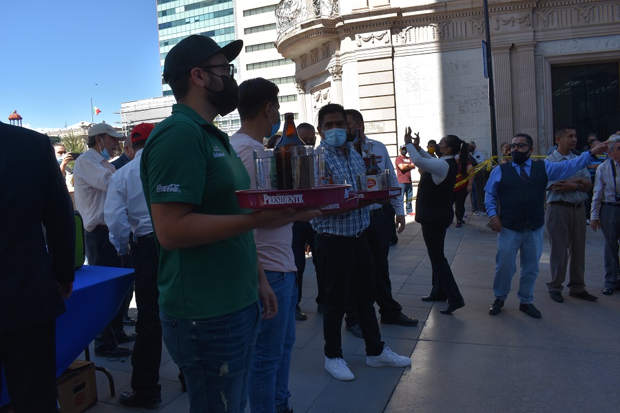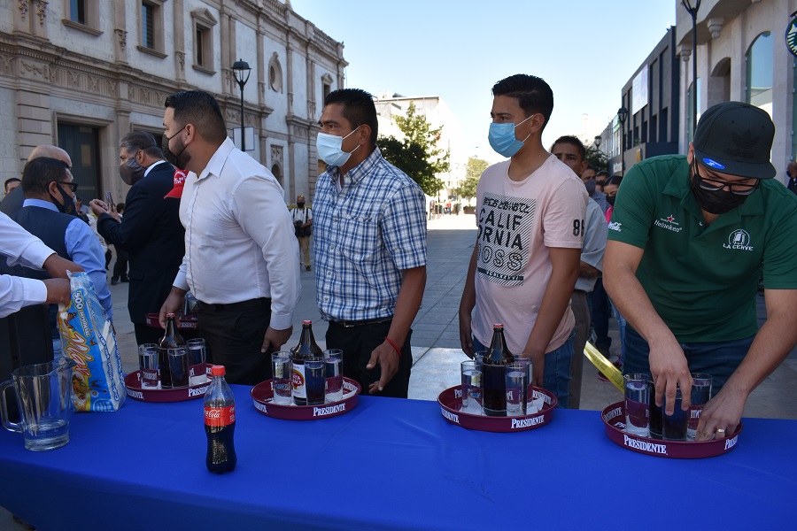 Una multitud se reunió a su alrededor, para ver las habilidades de los diferentes meseros, hombres y mujeres que en bandejas llevaron tragos y cervezas demostrando quien era el mejor, se vivió sin duda momentos de alegría entre la gente ahí reunida.