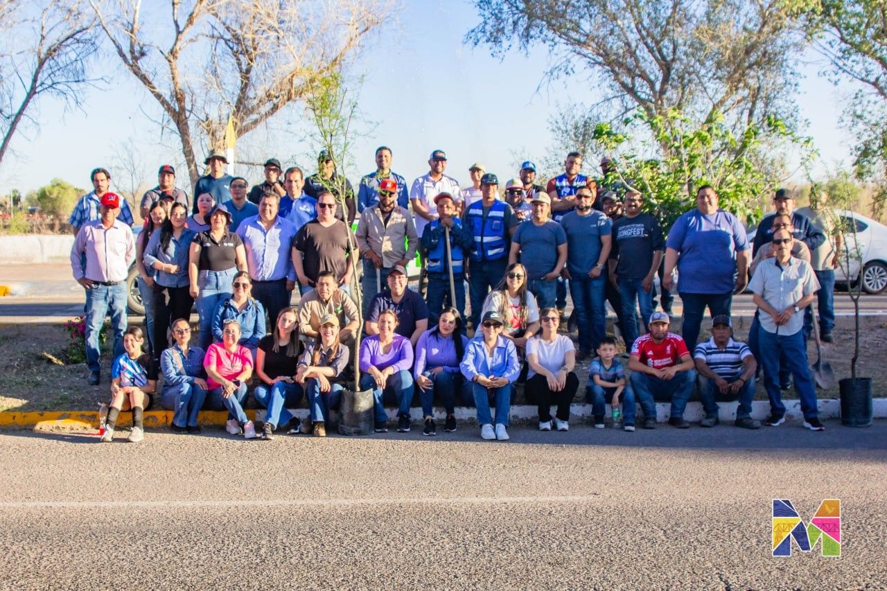 Realizan Gobierno de Meoqui y JMAS reforestación con 90 árboles en el bulevar Eduardo Nájera