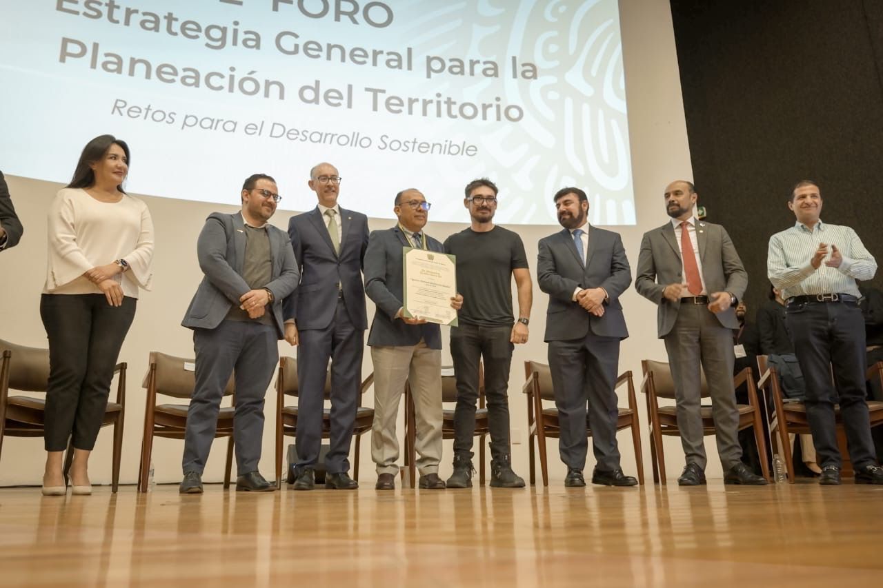 Durante el 2º Foro “Estrategia General para la Planeación del Territorio”, efectuado en la ciudad de Toluca, Estado de México, el secretario de Desarrollo Urbano y Ecología (SDUE), Gabriel Valdez Juárez, recibió la distinción en representación de la administración estatal.