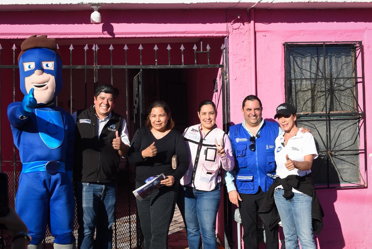 Chihuahua.- Sumando esfuerzos que permitan fortalecer el cuidado del agua en Chihuahua, la diputada local del Distrito 15, Joss Vega, recorrió en compañía de Alan Falomir, director de la Junta Municipal de Agua y Saneamiento (JMAS), de la diputada Federal, Manque Granados, y el regidor Adán Galicia, la colonia Infonavit Nacional con el Programa Chihuahua sin Fugas.