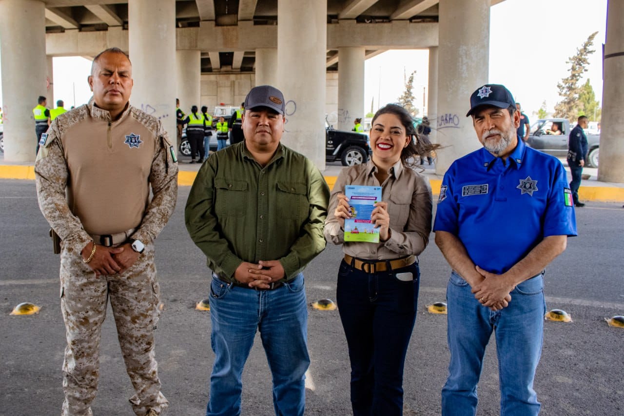 Meoqui, Chih.- La alcaldesa de Meoqui, Miriam Soto, en conjunto con la Secretaría de Seguridad Pública Estatal, la Dirección de Seguridad Pública Municipal, así como Protección Civil tanto estatal como municipal, realizaron un recorrido por los diversos puntos de auxilio con la finalidad de salvaguardar la integridad de las familias que vienen a visitar la región durante la época vacacional.