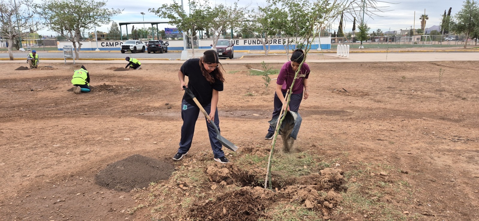 Chihuahua, Chih.- El Gobierno Municipal, a través de la Dirección de Mantenimiento Urbano, junto con alumnos del Colegio de Bachilleres de Chihuahua (COBACH) Plantel 8, reforestó con 35 árboles el emblemático parque La Huerta Legarreta.