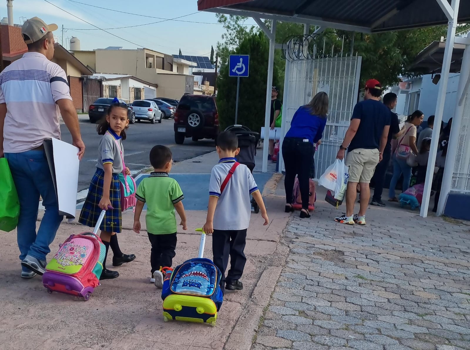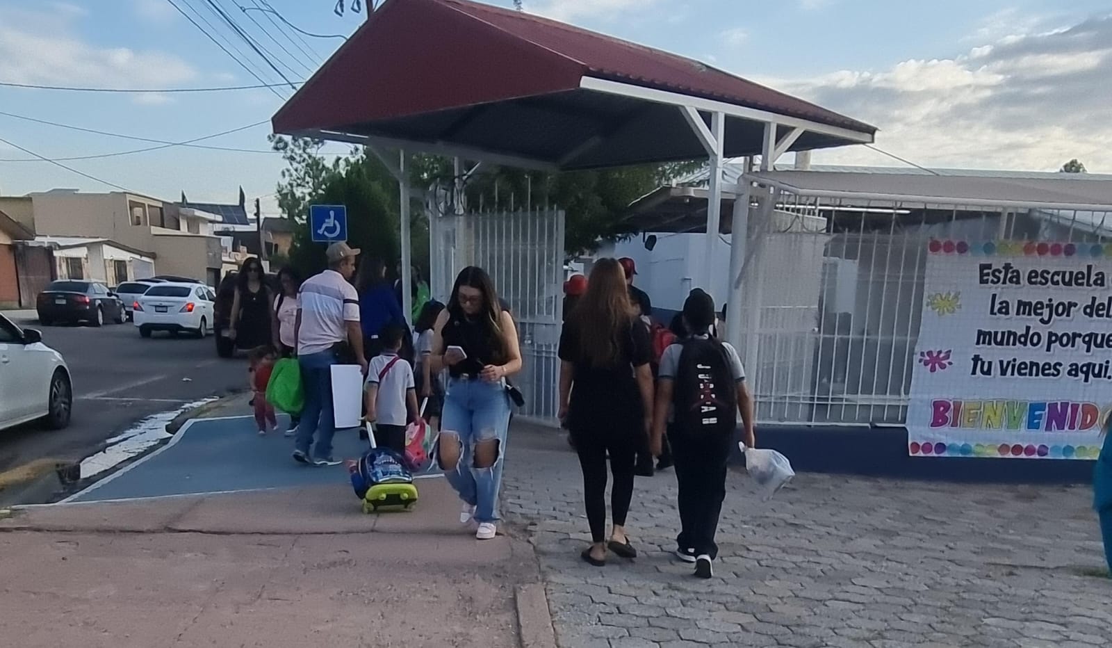 Mediante un dispositivo de seguridad al exterior de los planteles, implementado tantopor agentes de la Policía Vial y Policía Municipal, inició el arribo de los padres de familia con sus hijos.