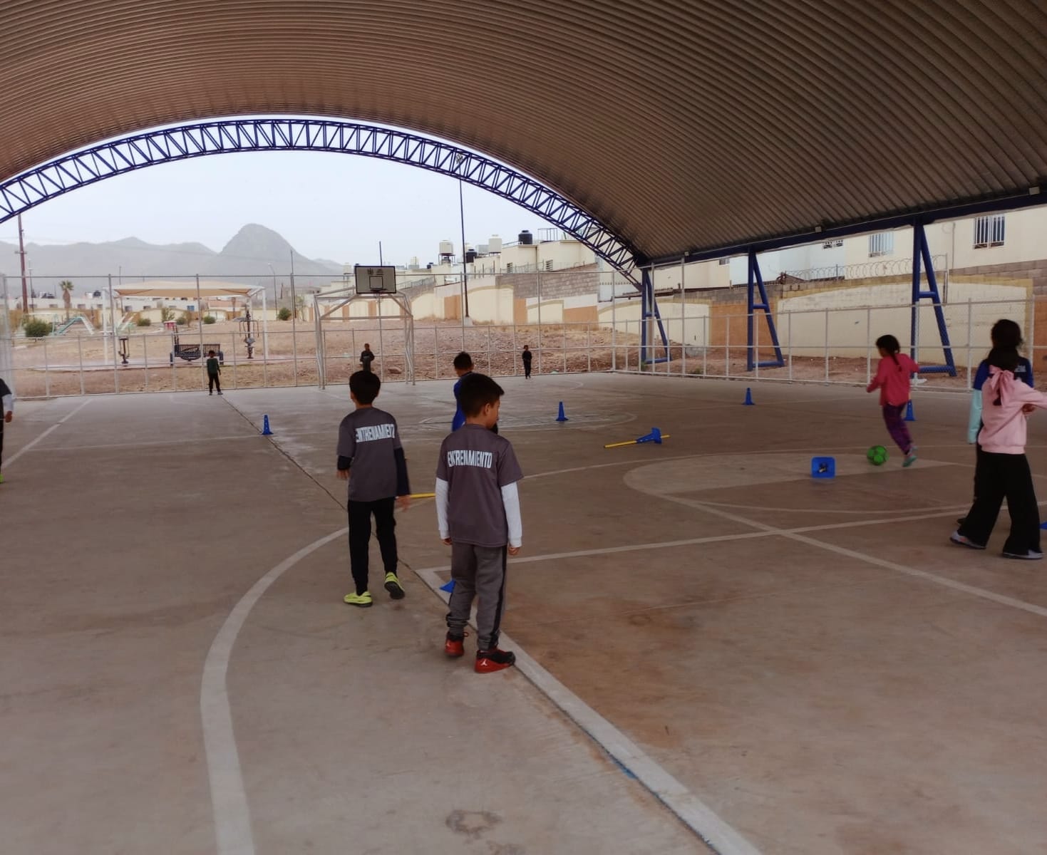 Los trabajos incluyeron la instalación de un domo metálico, renovación de pintura y rehabilitación de la malla ciclónica, mejoras que permiten que alrededor de 300 niñas, niños y jóvenes utilicen el espacio para practicar fútbol y basquetbol en condiciones más adecuadas.