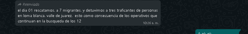 A 10 días de que salieron de una casa ubicada en la colonia 2 de Octubre en Chihuahua capital no se sabe nada de ellos, al parecer fueron secuestrados por una banda delictiva, quienes dejaron en libertad a un niño de 14 años, quien también formaba parte de las 12 personas del grupo de migrantes.