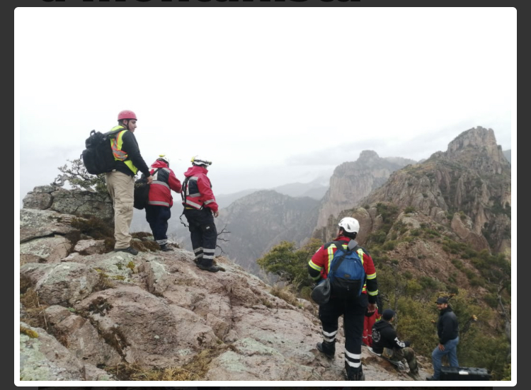 Una brigada de rescatistas encabezada por la Coordinación Estatal de Protección Civil, de Gobierno del Estado, realizó maniobras durante más de seis horas para rescatar con vida a uno de los dos montañistas estadounidenses que escalaban la pared de El Gigante en la Sierra Tarahumara.
