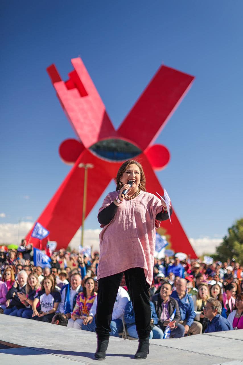 Juárez.- La precandidata del Frente Amplio por México a la presidencia, Xóchitl Gálvez, llegó a la frontera este lunes y congregó a cientos de simpatizantes en la Plaza de la Mexicanidad, donde se encuentra el monumento de la X.