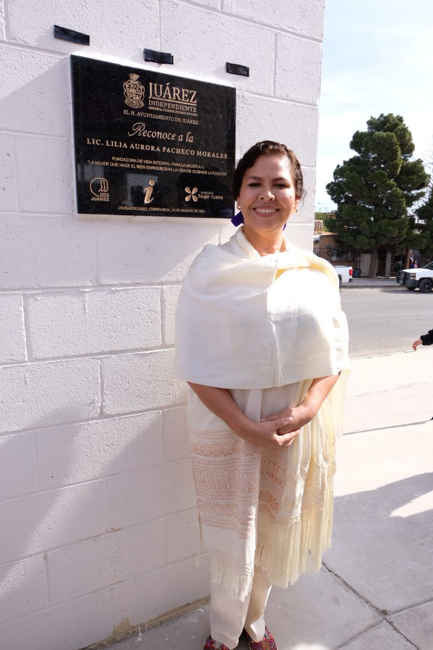 En el marco del Día Internacional de la Mujer, el Presidente Municipal, Armando Cabada Alvídrez y su esposa, la Presidenta del DIF Municipal, Alejandra Cabada, develaron la Placa a la Mujer Ilustre, a través de la cual se reconoce el trabajo de la activista social y promotora de los derechos de las mujeres, Lilia Aurora Pacheco Morales.