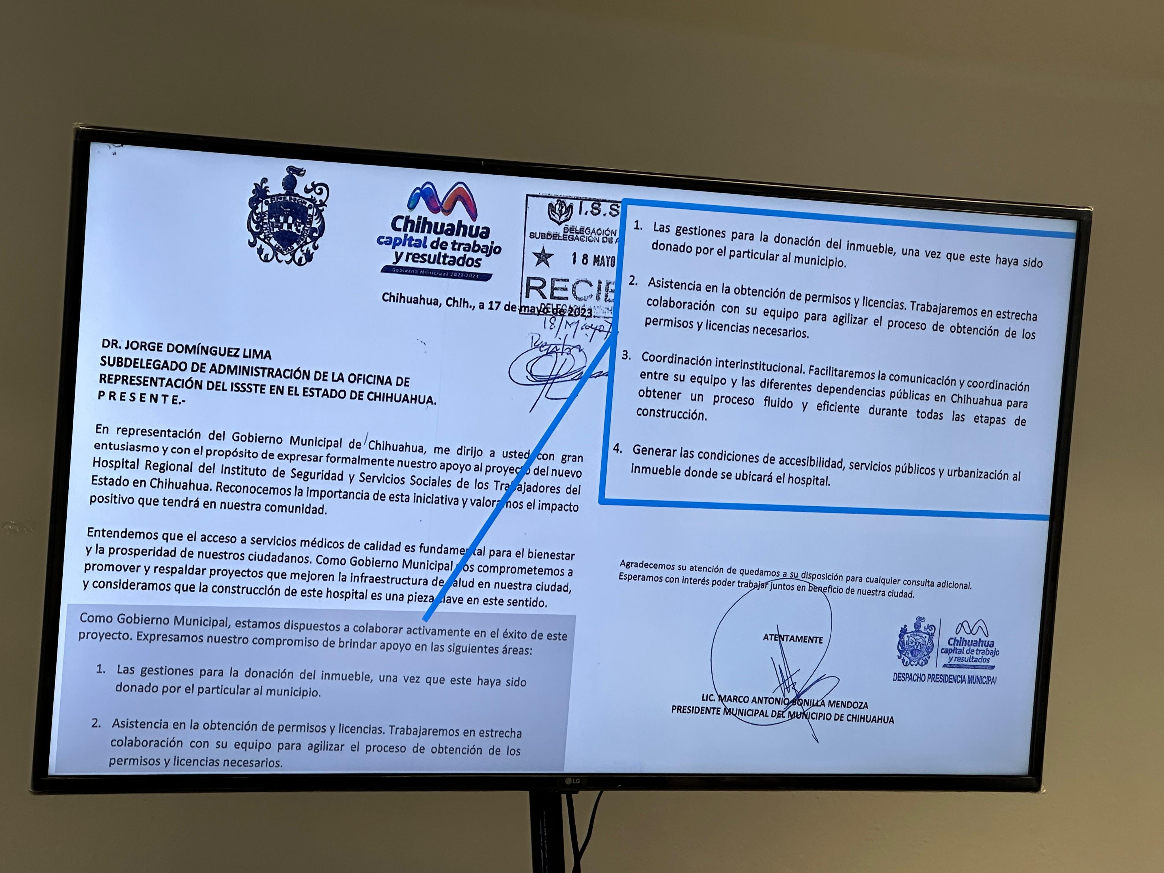 Fue el pasado mayo del 2023, donde se envió un documento dirigido al Subdelegado de Administración de la Oficina, Jorge Domínguez Lima, en donde el Municipio le expresó estar dispuesto a colaborar activamente en el éxito del proyecto, para poder dar solución a la deficiencia que se presenta.