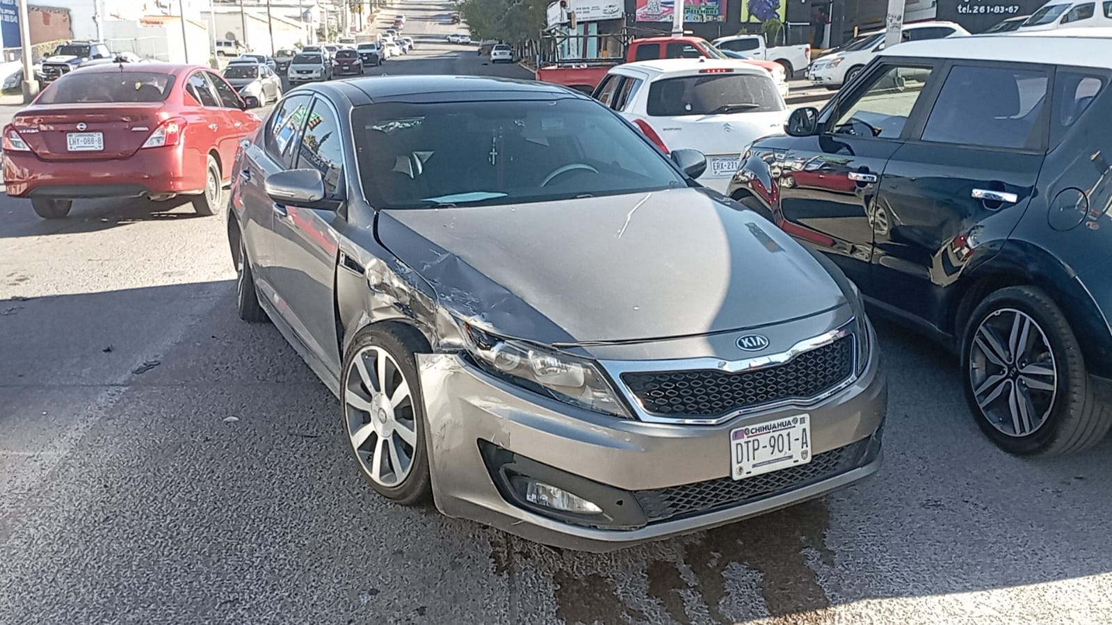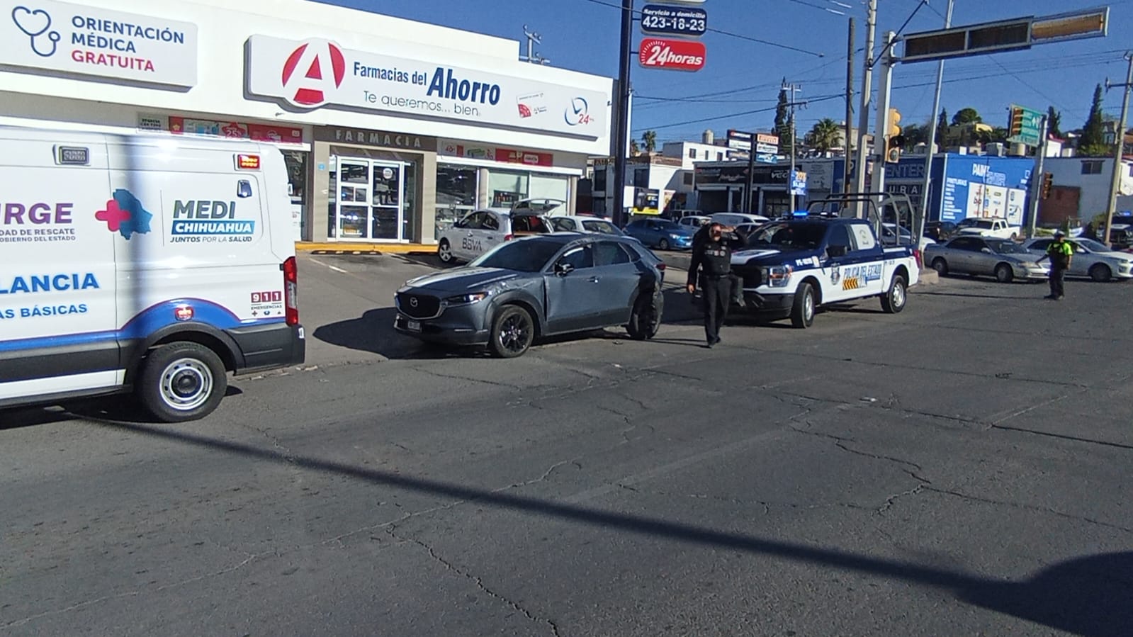 Chihuahua.- Caos vehicular sobre las avenidas Pacheco y 20 de noviembre luego de un aparatoso choque con volcadura que involucró a una patrulla de la Policía eEstatal, una camioneta Mazda cx30 y un vehículo Kia Forte, que dejó a una mujer lesionada.