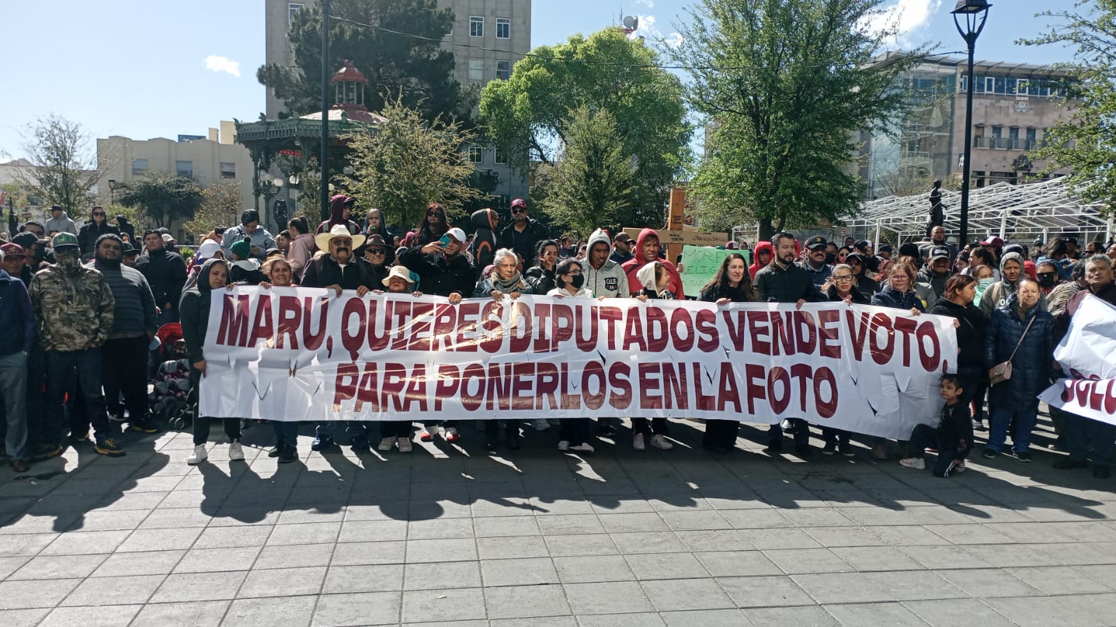 Los inconformes denunciaron que la gobernadora Maru Campos Galván impuso diputados, que ellos calificaron como “vende votos” para que aparezcan en la boleta electoral.