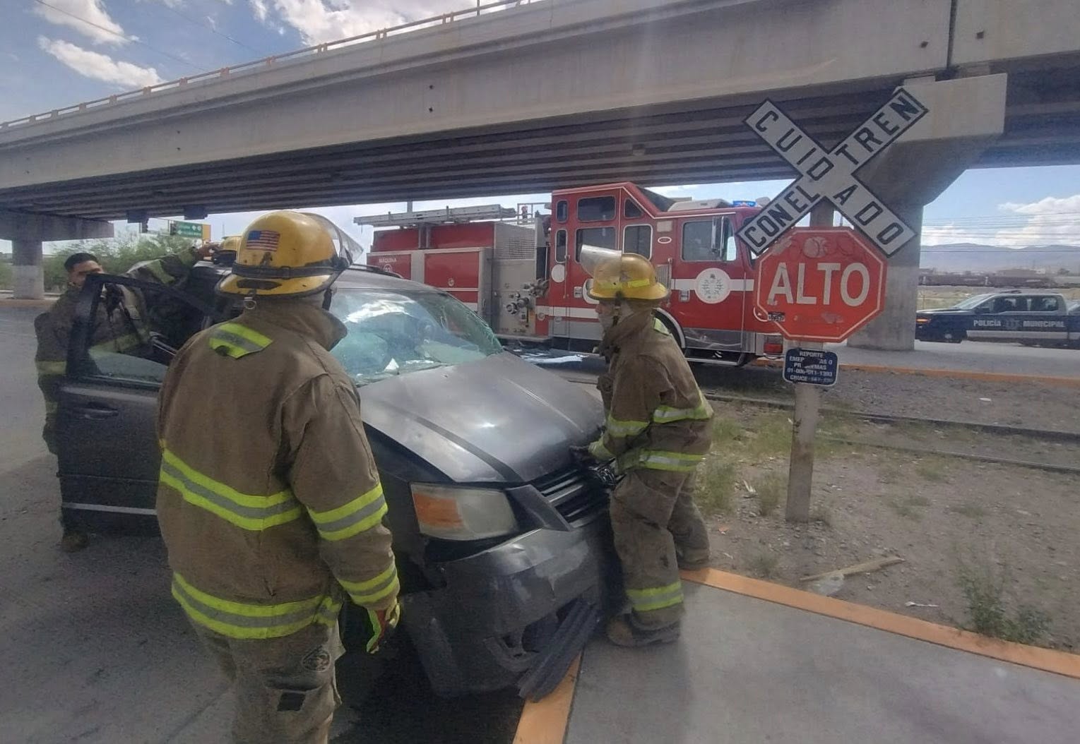 Juárez.- Elementos de la dependencia atendieron un accidente vehicular con una locomotora del ferrocarril, registrado en el cruce de Carlos Amaya y Eje Vial Juan Gabriel, en la colonia Tierra y Libertad, la tarde del martes.