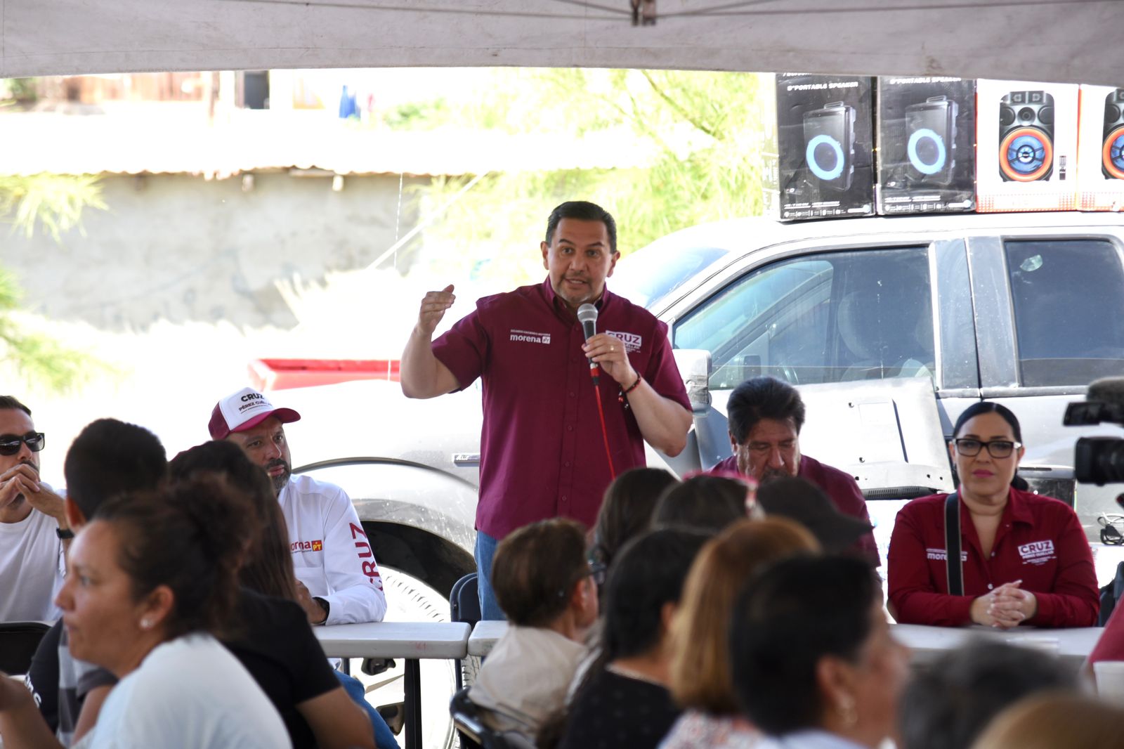 Juárez.- El candidato a la alcaldía de Ciudad Juárez por la coalición “Sigamos Haciendo Historia por Chihuahua”, Cruz Pérez Cuéllar, se reunió esta tarde con la “Asociación de Colonos y Comerciantes Lorenzo Muñoz” en la colonia Granjas de Chapultepec.
