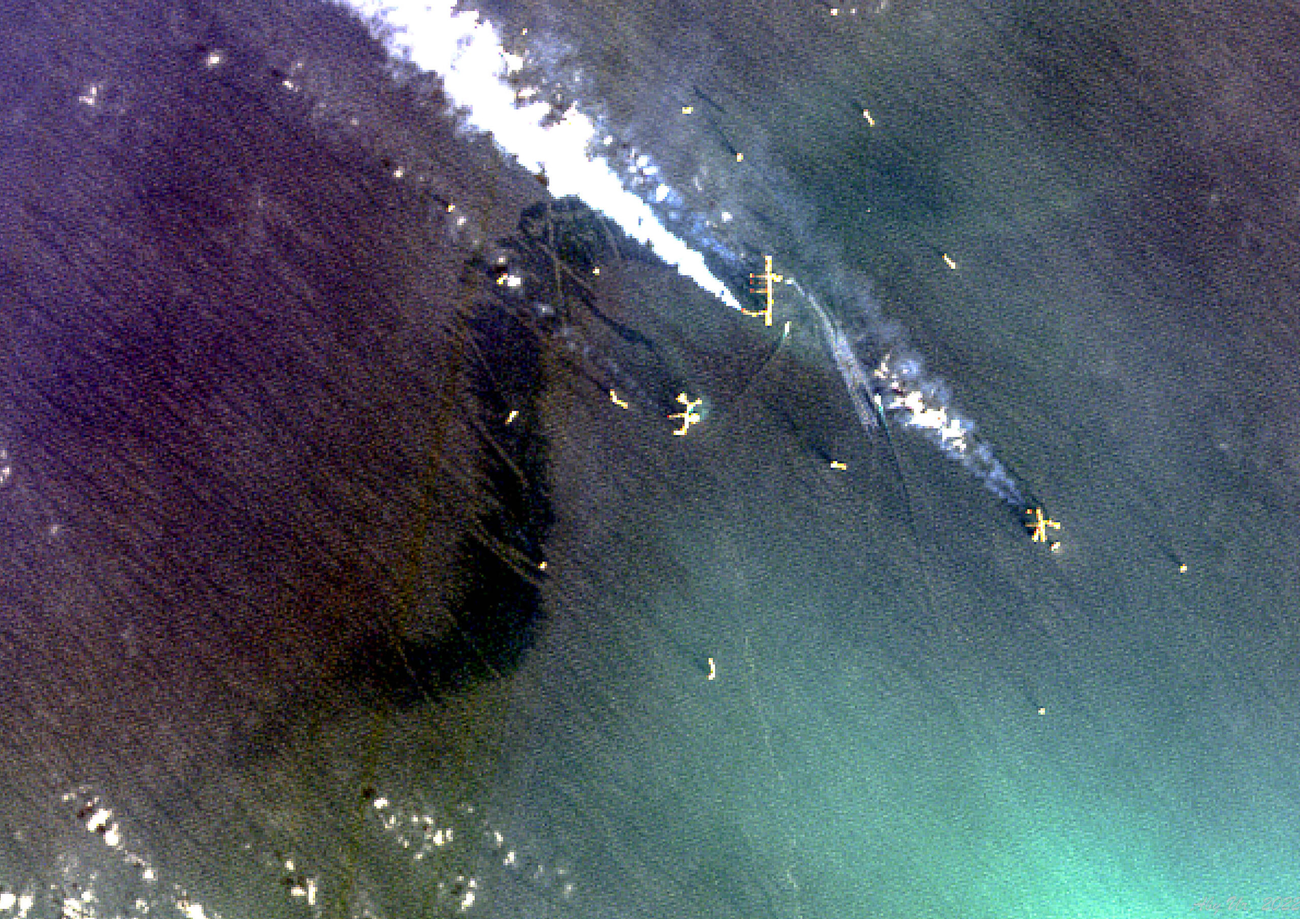 3. La coincidencia entre el sitio donde se detectó la pérdida de integridad del oleoducto y el sitio ubicado por los científicos como origen de la estela de aceite observada en las imágenes satelitales.