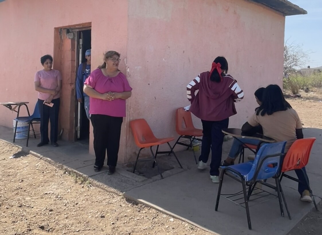 Lo que más preocupa a la directora Pilar Muñoz, son las altas temperaturas en Chihuahua, en donde el termómetro marcó hasta los 42 grados y así ellos tienen que continuar su plan de estudios.