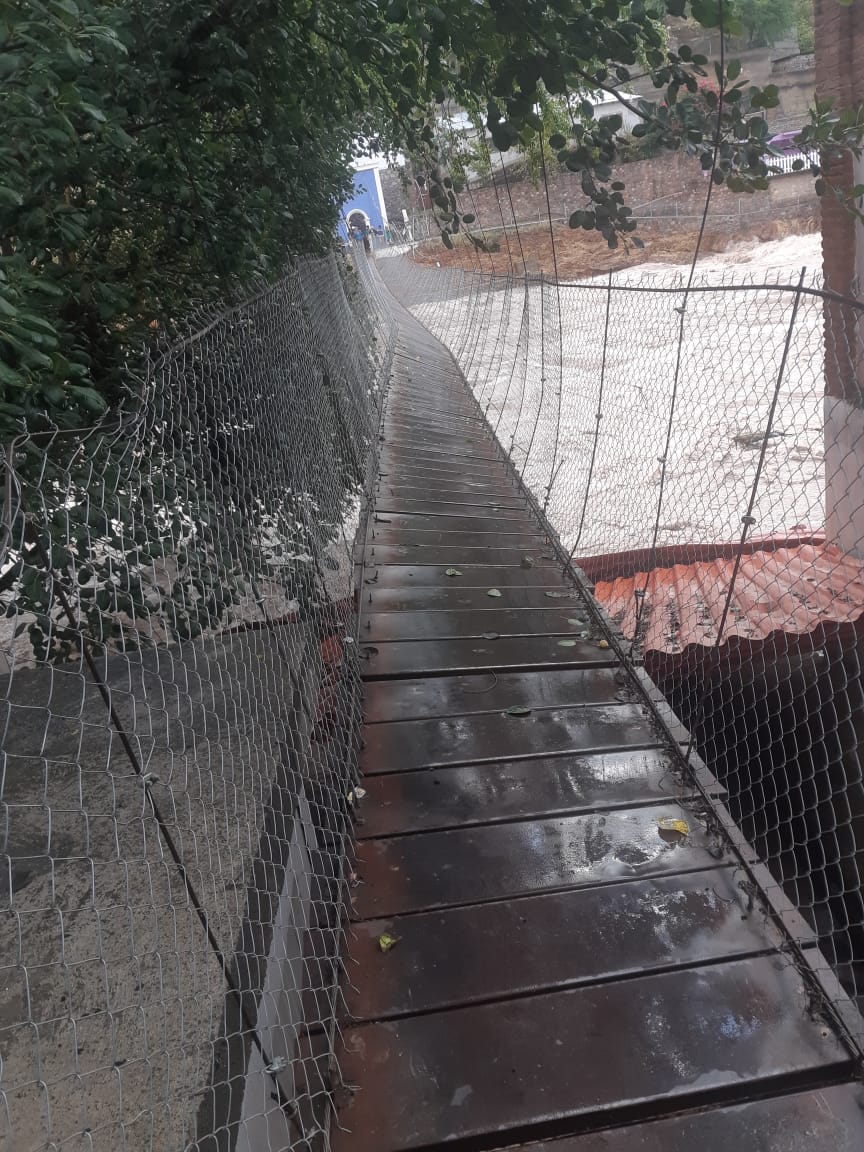 Se perdieron dos puentes colgantes por la subida del nivel del río, se dañó la calle del Malecón y parcelas de cultivo, y en total se desalojó a 100 personas.