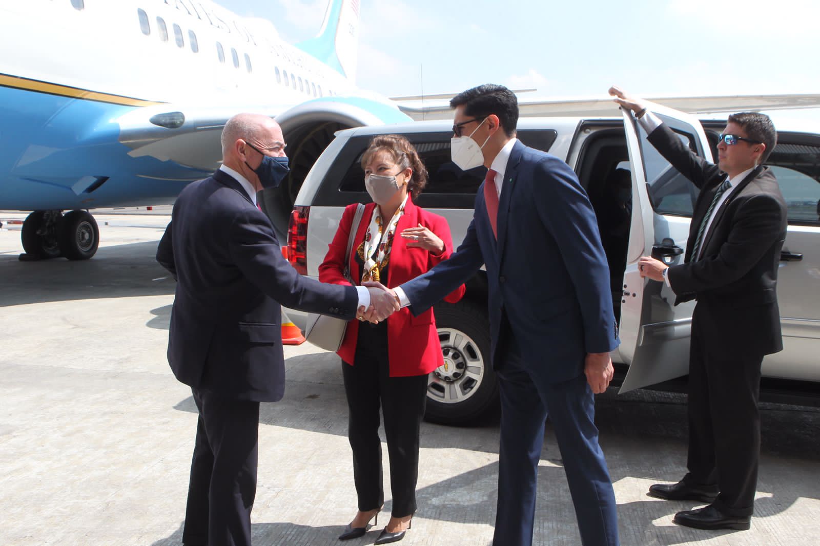 Los funcionarios fueron recibidos por el jefe de la Unidad para América del Norte del gobierno mexicano, Roberto Velasco, quien estuvo acompañado de Stephanie Syptak-Ramnath, encargada de negocios de la Embajada de Estados Unidos en México.