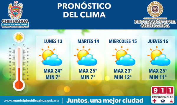 La Coordinación Municipal de Protección Civil informa que durante los próximos cuatro días el termómetro marcará un ascenso en la temperatura, con una máxima de 25 grados centígrados y mínima de 7 grados, lo que viene a mejorar las condiciones que se presentaron el pasado fin de semana, sin embargo es importante tomar las debidas precauciones para evitar problemas de salud o hipotermia.