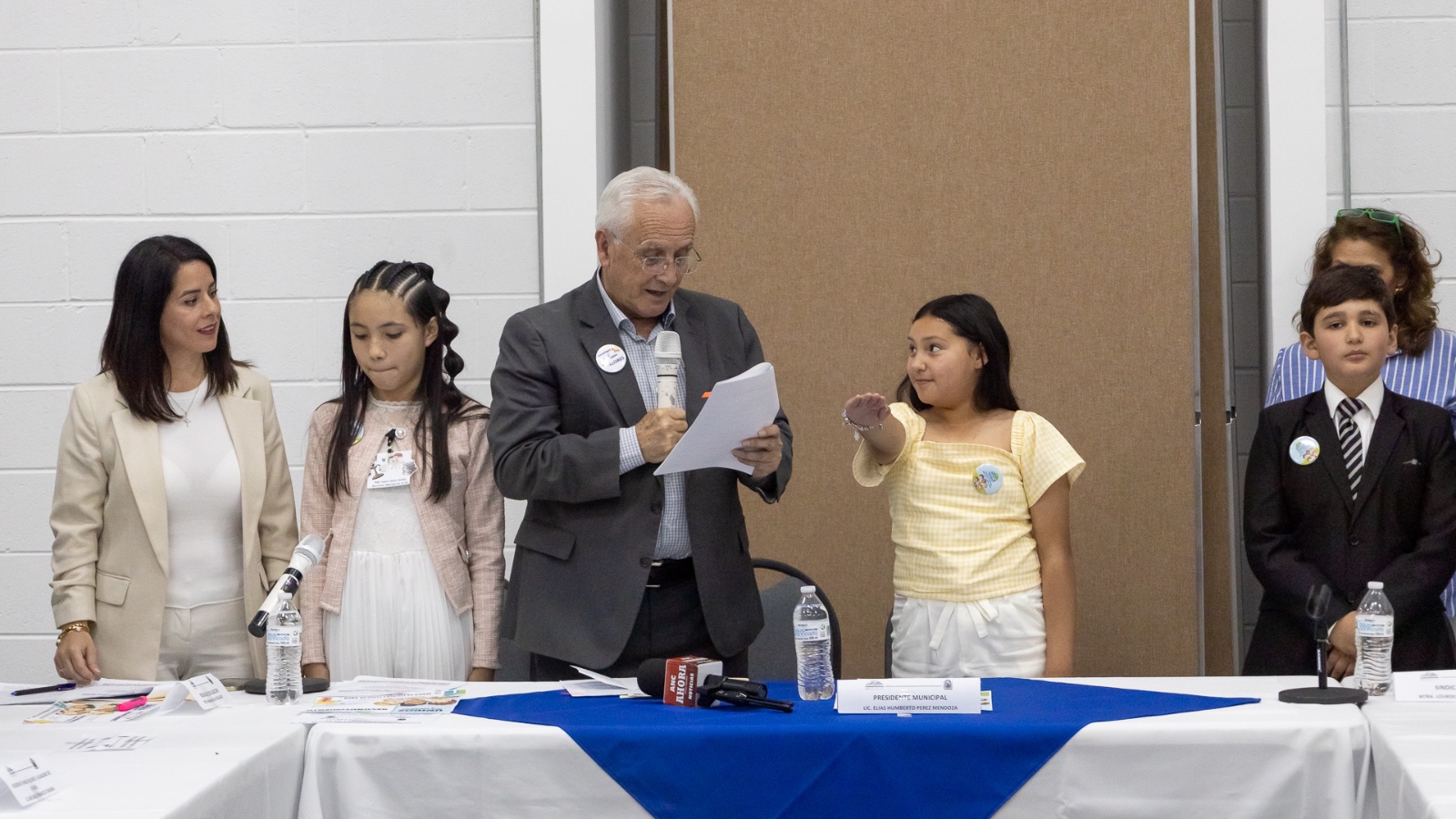 La niña presidenta, Emily Sofía Torres, fue la encargada de tomar protesta tanto a niños funcionarios como a regidores. Posteriormente, expuso el tema con el que participó en la convocatoria Funcionario Infantil por un Día 2026, relacionada con la eliminación de la violencia contra las mujeres.