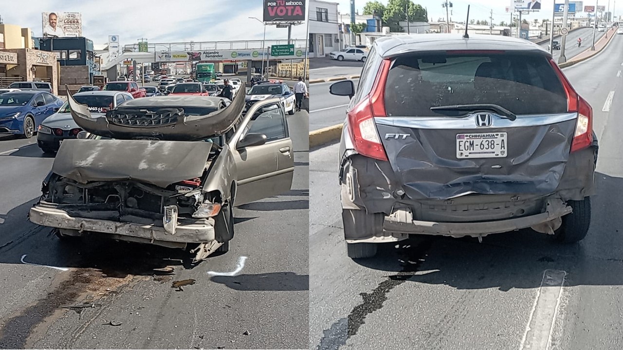 Chihuahua.- Caos vehicular se generó tras un choque alcance sobre el Periférico de la Juventud, en sentido del norte a sur, para que tome sus precauciones ya que hay tráfico en la zona entre la avenida Homero y la calle Educación.