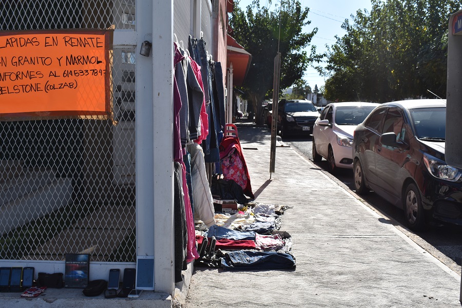 Chihuahua.- Los vecinos de San Jorge, montan frente a sus casas estacionamientos y puestos de ropa de segunda mano y comida, aprovechando la vorágine de visitantes que llegan a los panteones, tanto a visitar a sus seres queridos fallecidos, como a vivir la Feria del Hueso.