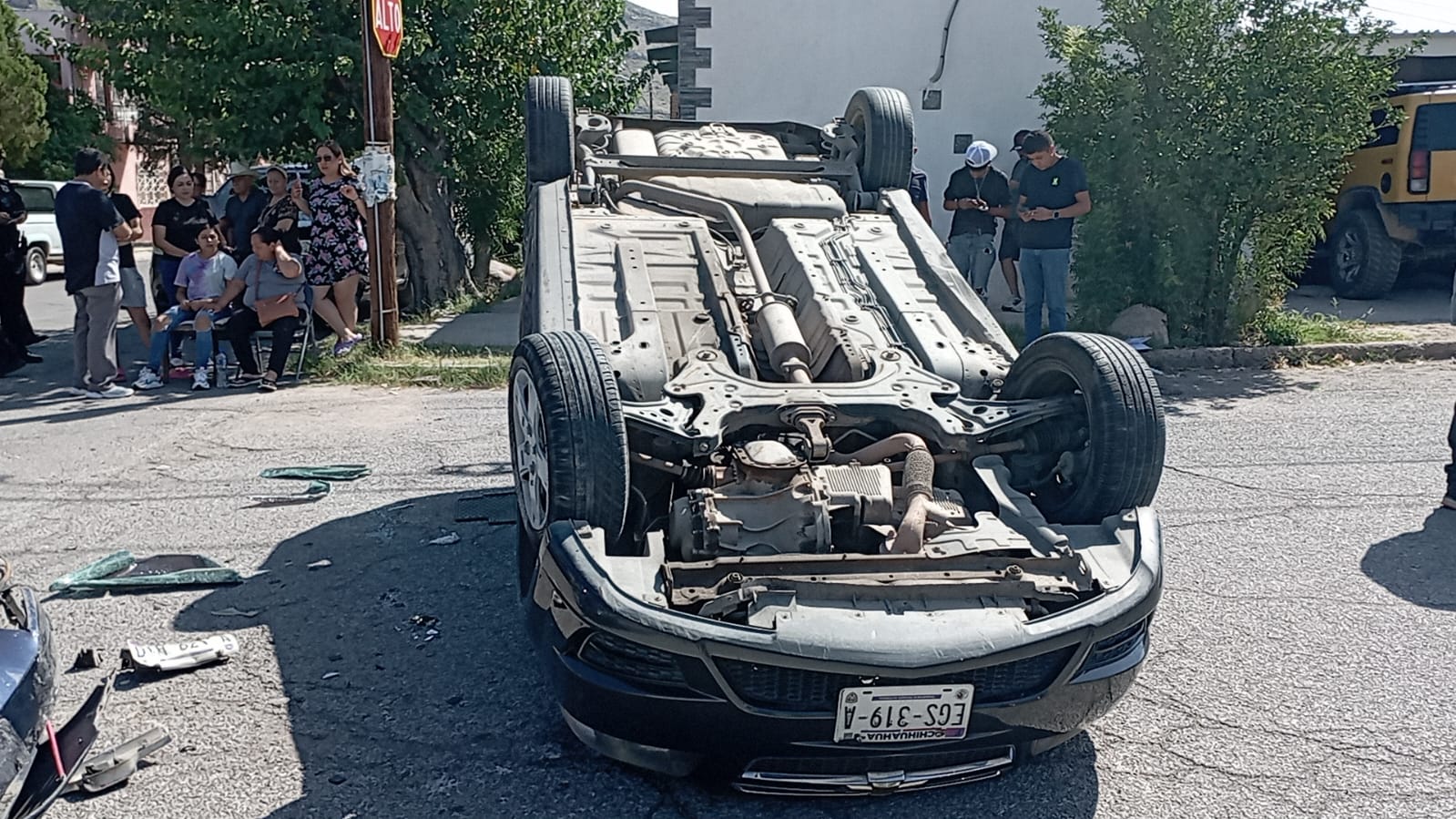 Volcadura de auto en la Emilia Miller y Nuevo León, dos mujeres con golpes leves