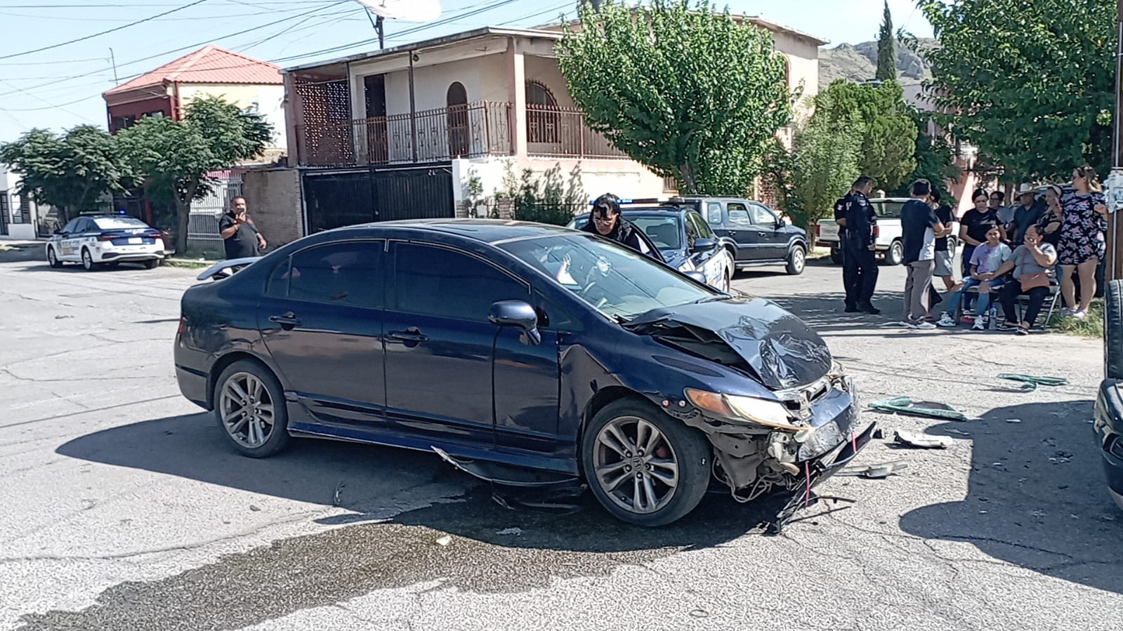 Chihuahua.- Un chofer de plataforma circulaba con dos pasajeras sobre la calle Emilia Miller, en sentido de norte a sur, omitiendo su alto correspondiente al llegar al cruce con la calle Nuevo León, lo que provocó que le impactará el conductor de un vehículo, Honda Civic, que lo proyectó e hizo que volcara.