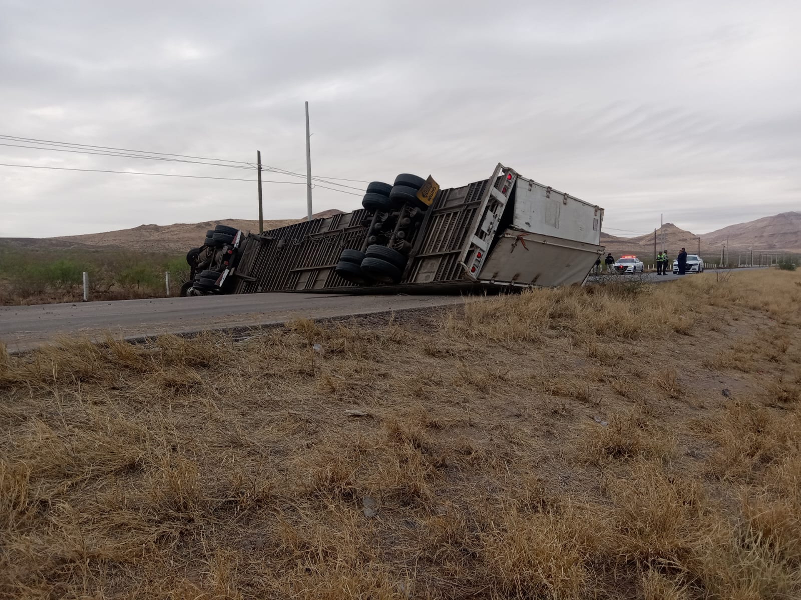 Chihuahua.- Una volcadura de tráiler se registró la mañana de este lunes en el kilómetro 175+200 la carretera Chihuahua-Delicias, en el carril de norte a sur.