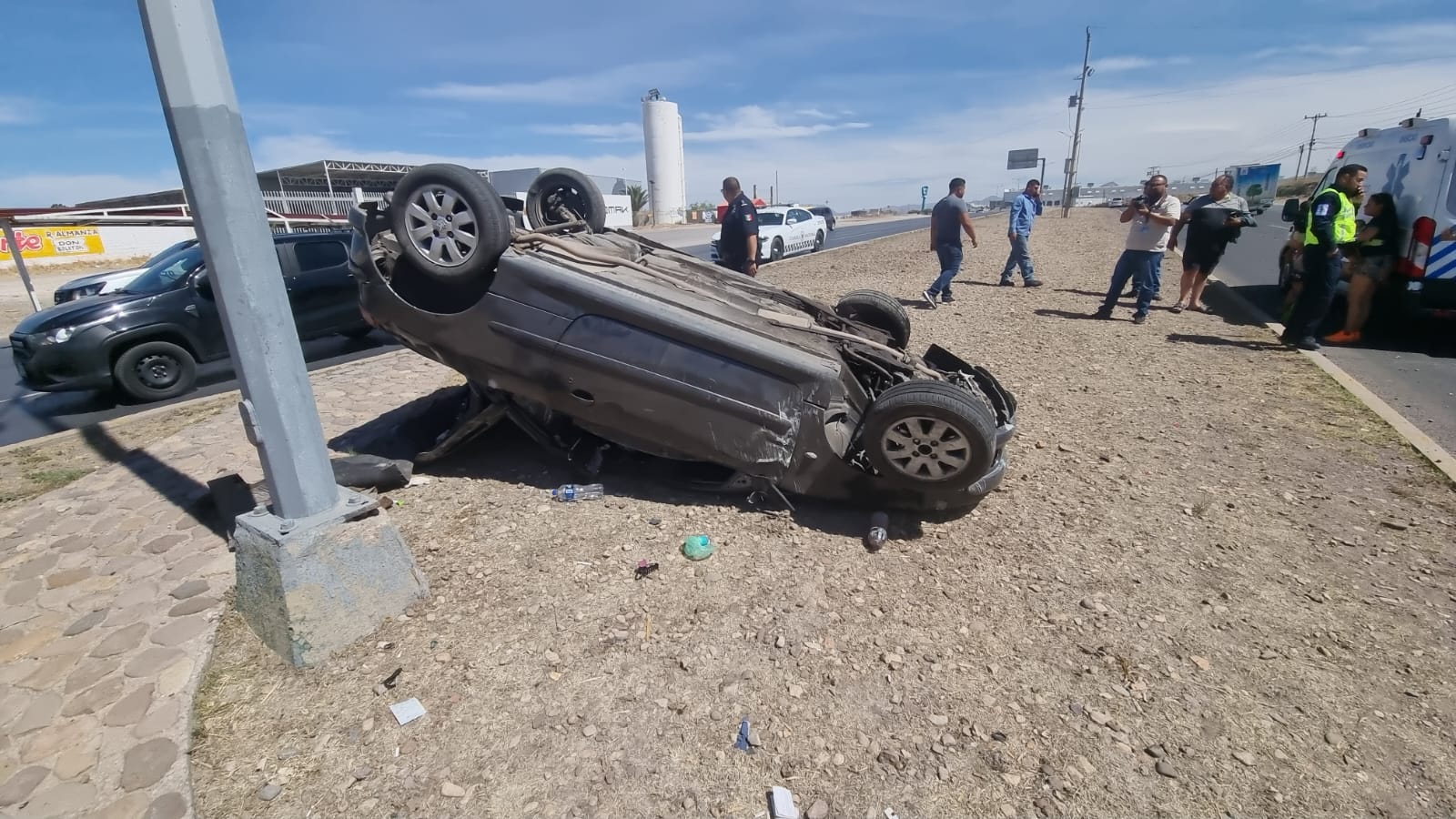 Vuelca auto tras chocar con camión en el KM 17 de la carretera a Juárez